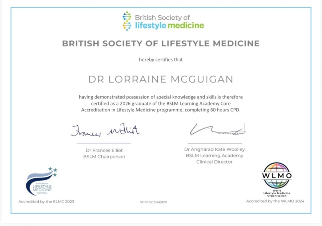 In 2026 I completed the British Society Core Accreditation to become a Certified Lifestyle Physician.