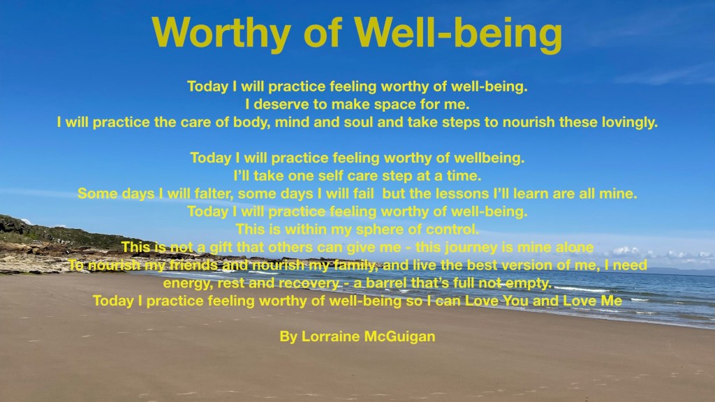 I really believe that fostering an attitude that cultivates our sense of a right to and giving priority to wellbeing is important.